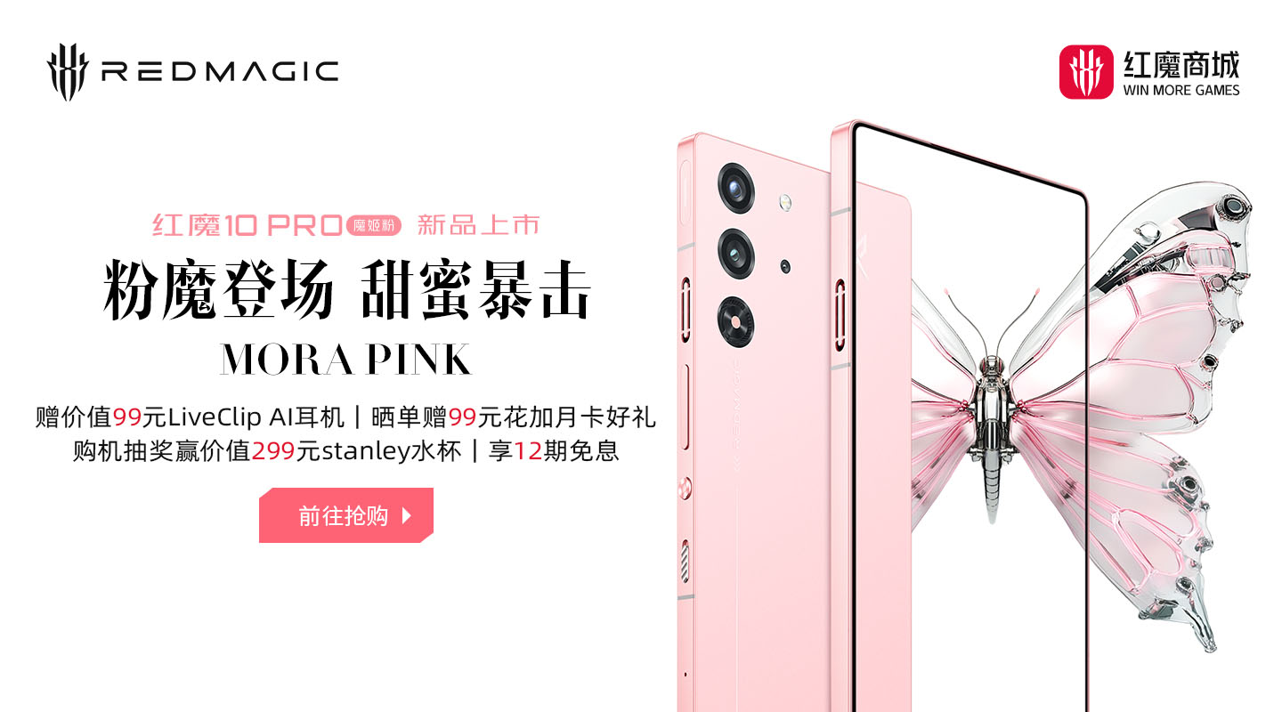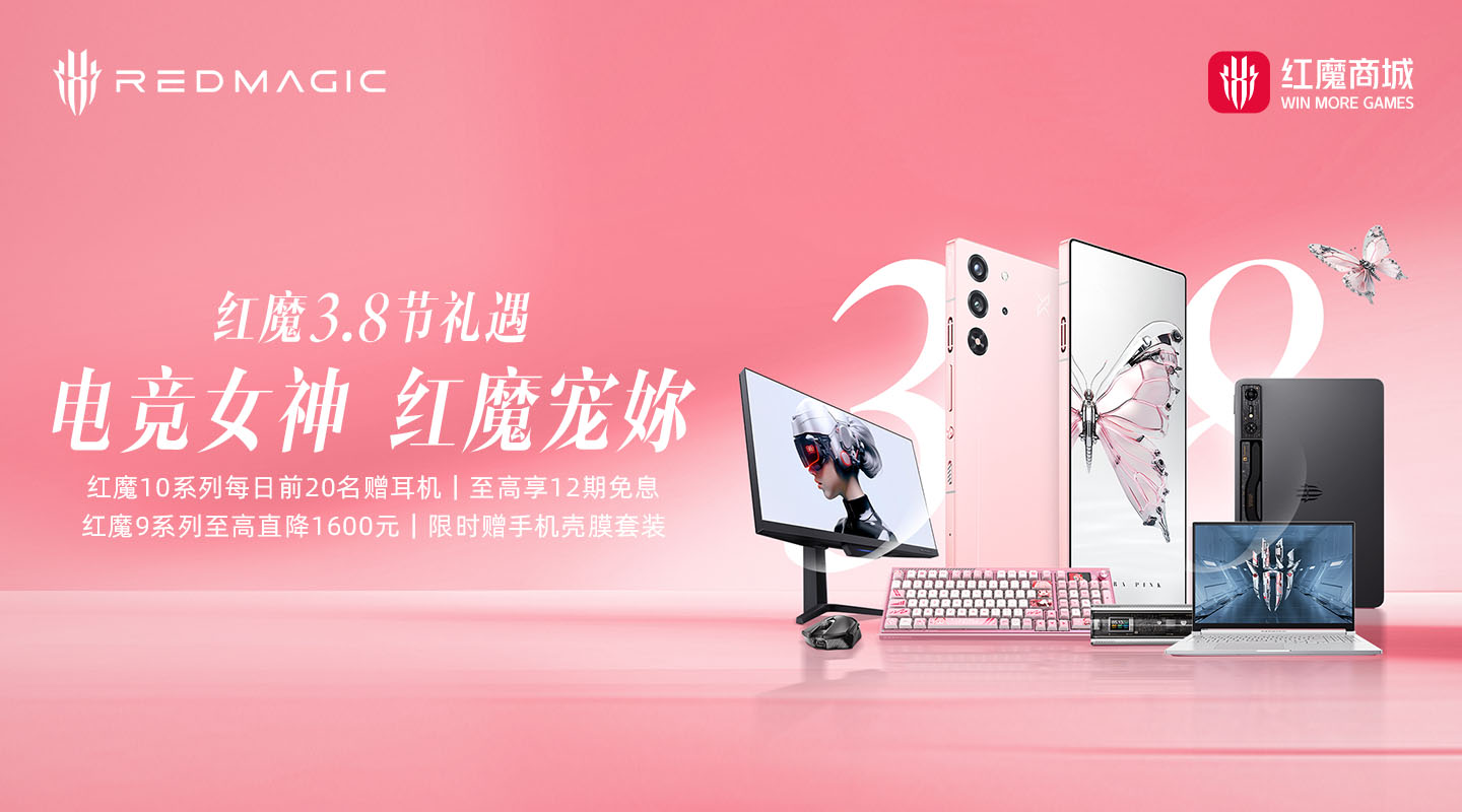 女神节袭,专属粉色惊喜等你开启!3 月 7 日 10 点,红魔 10 PRO MORA PINK 准时开启限时抢购。